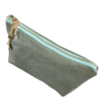 Kaki Farbenes Etui aus weichem Leder, ideal für Geld, Kosmetik, Schreibwaren oder Kleinkram. Der goldene, breite Reißverschluss liegt auf türkisfarbenem Baumwollband und wird durch einen Medusa-Design Anhänger dezent akzentuiert. Das Täschchen ist mit grau-weiss gepunkteten Innenstoff gefüttert. Innen befinden sich zwei Kreditkartenfächer, um Karten übersichtlich zu sortieren. Vielseitig einsetzbar – als kleines Organizer-Täschchen für unterwegs, Schmink- oder Stifteetui oder einfache Aufbewahrung für Kleinteile.