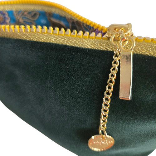 Necessaire für Geld, Kosmetik, Schreibwaren, oder Krimskrams. Aus Samt/Velvet mit eingebleichtem Muster. Der goldene breite Reissverschluss mit goldenem Medusa-Design Anhänger verleihen dem Täschchen das gewisse Etwas.